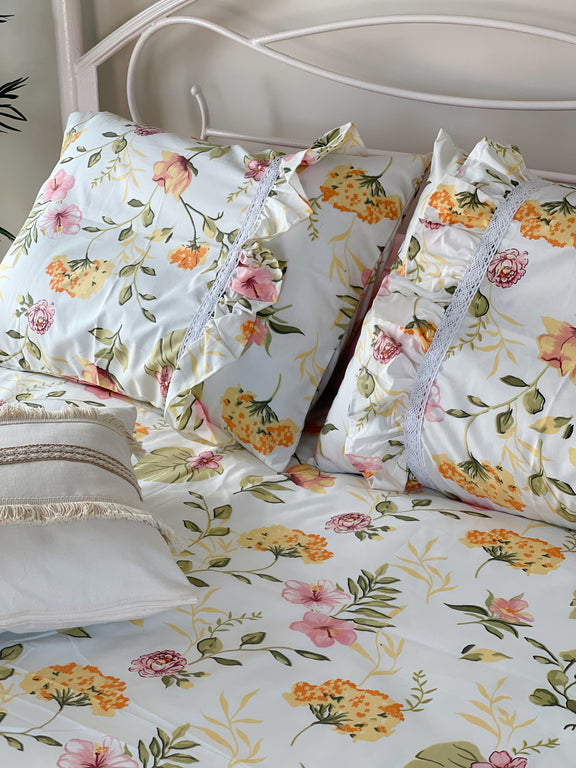 استمتعوا بملمس ناعم وخامة هادية بتديكم إحساس راقي طول الليل. الطقم خامته ثابتة، ألوانه مش بتبهت، ومقاساته مظبوطة على السرير بدون أي مجهود. اختيار عملي وشيك يناسب الاستخدام اليومي.