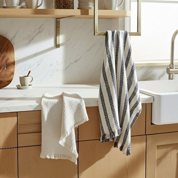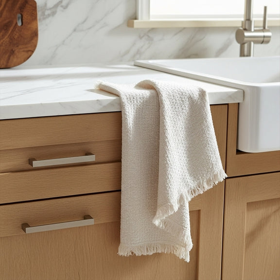 فوطة مطبخ مصنوعة من قطن طبيعي 100٪ ومنسوجة يدويًا على النول، بتقدم امتصاص عالي ولمسة ناعمة تتحمّل الاستخدام اليومي والغسيل المتكرر، مع شكل بسيط وأنيق يناسب كل المطابخ.