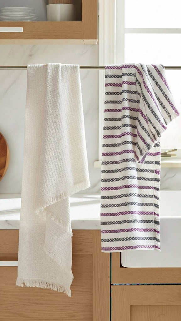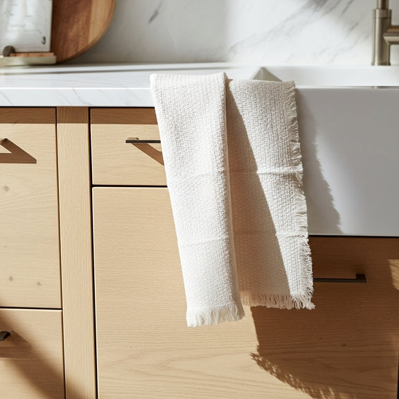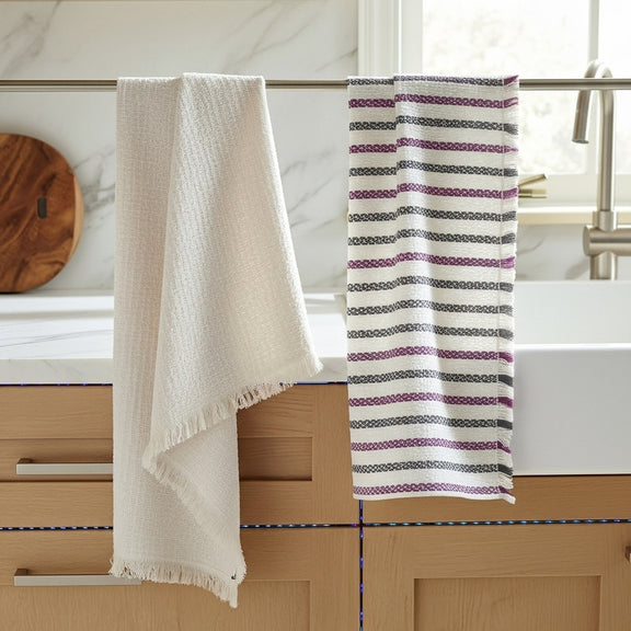 فوطة مطبخ مصنوعة من قطن طبيعي 100٪ ومنسوجة يدويًا على النول، بتقدم امتصاص عالي ولمسة ناعمة تتحمّل الاستخدام اليومي والغسيل المتكرر، مع شكل بسيط وأنيق يناسب كل المطابخ.