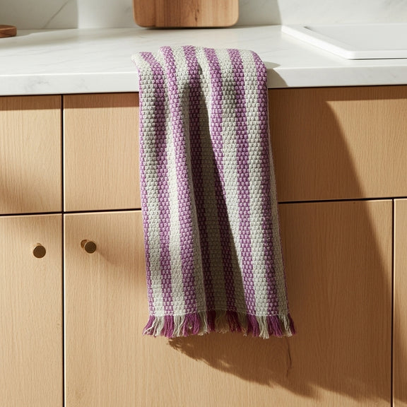 فوطة مطبخ مصنوعة من قطن طبيعي 100٪ ومنسوجة يدويًا على النول، بتقدم امتصاص عالي ولمسة ناعمة تتحمّل الاستخدام اليومي والغسيل المتكرر، مع شكل بسيط وأنيق يناسب كل المطابخ.