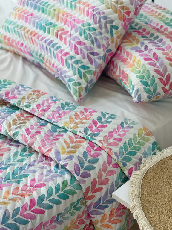 “ كوفرة كابتونية + 2 خدادية فاخرة ولمسة فخامة لا تقاوم! ✨ خامة ناعمة ومتينة، تطريز أنيق ومضغوط بأشكال هندسية بالإضافة إلى لمسة راقية لغرفتك.