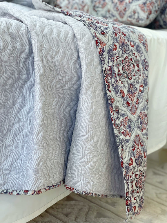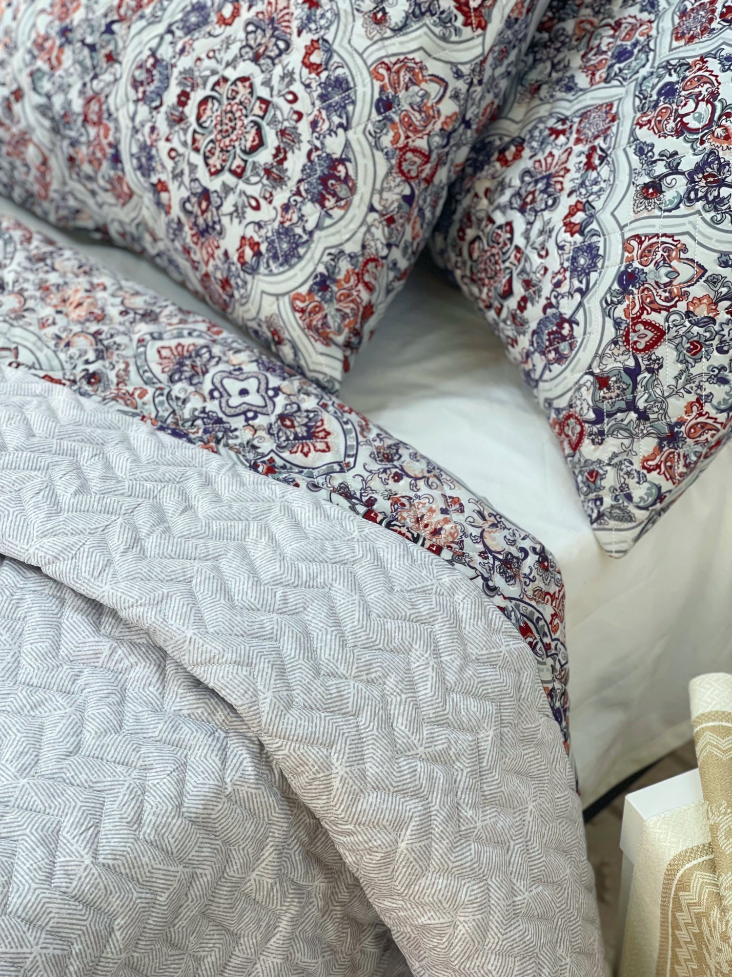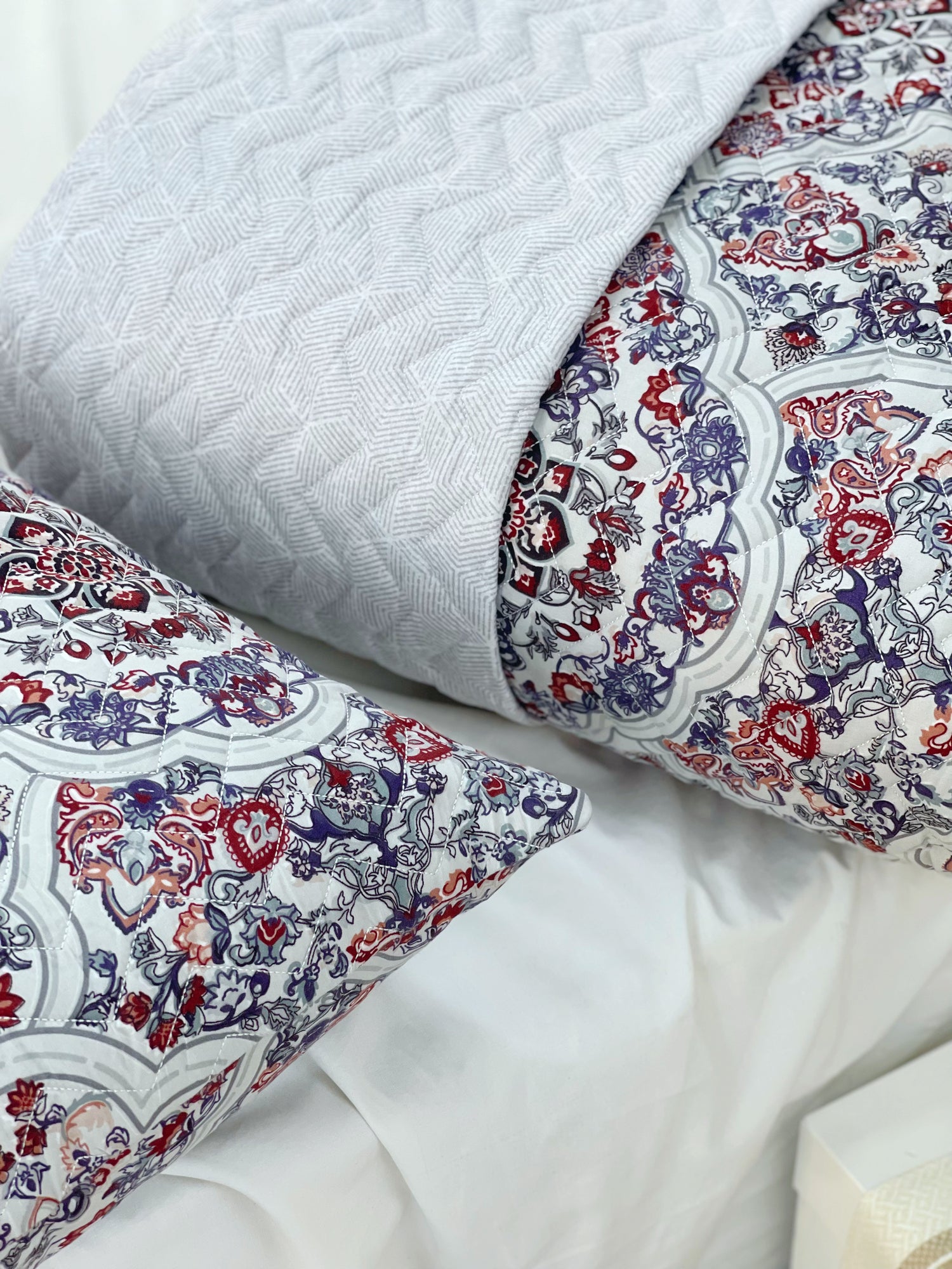 “ كوفرة كابتونية + 2 خدادية فاخرة ولمسة فخامة لا تقاوم! ✨ خامة ناعمة ومتينة، تطريز أنيق ومضغوط بأشكال هندسية بالإضافة إلى لمسة راقية لغرفتك.