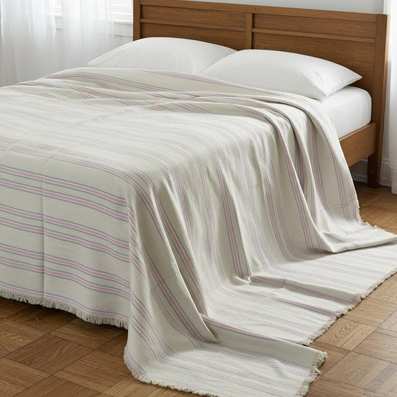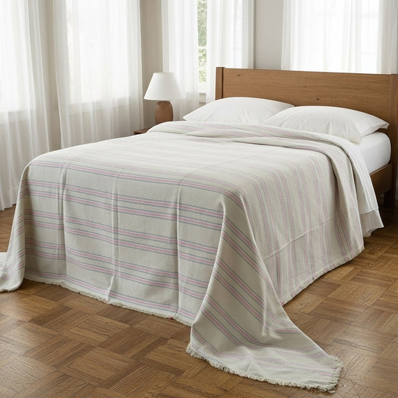 الكوفرتة خامتها ناعمة ومريحة، ودافئة بشكل مثالي للاستخدام اليومي سواء في الصيف أو الشتاء. تصميمها البسيط والأنيق يضيف لمسة فخامة ودفا على السرير ويكمّل ديكور الأوضة بسهولة.